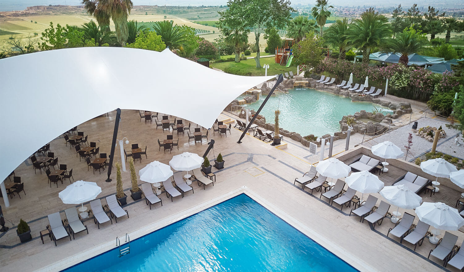 With 315 rooms, healthy thermal springs and grounds set among pine trees, Richmond Pamukkale Thermal invites you to rejuvenate both physically and emotionally. Located just 3 kilometers from Pamukkale, this thermal hotel has been providing all the comforts of home to guests traveling for business, health or pleasure for 25 years. This unique destination is just one hour from Denizli’s Çardak Airport.